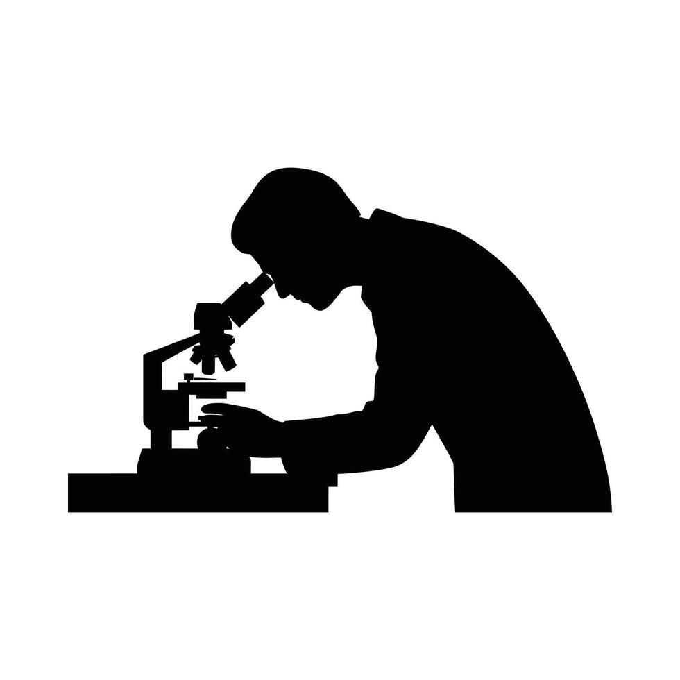 Silhouette of a man looking through a microscope in a laboratory setting vector