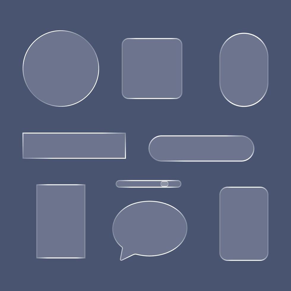 Rounded Shape Icon Set Transparent Glass UI Elements Buttons, and Frames for Modern Interface Design Pro Vector