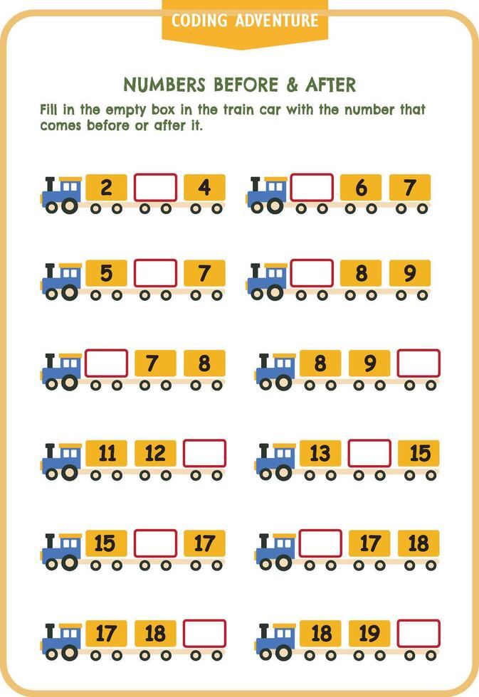 Math Sequencing Train Worksheet for Kids Number Order and Coding Activity Pro Vector