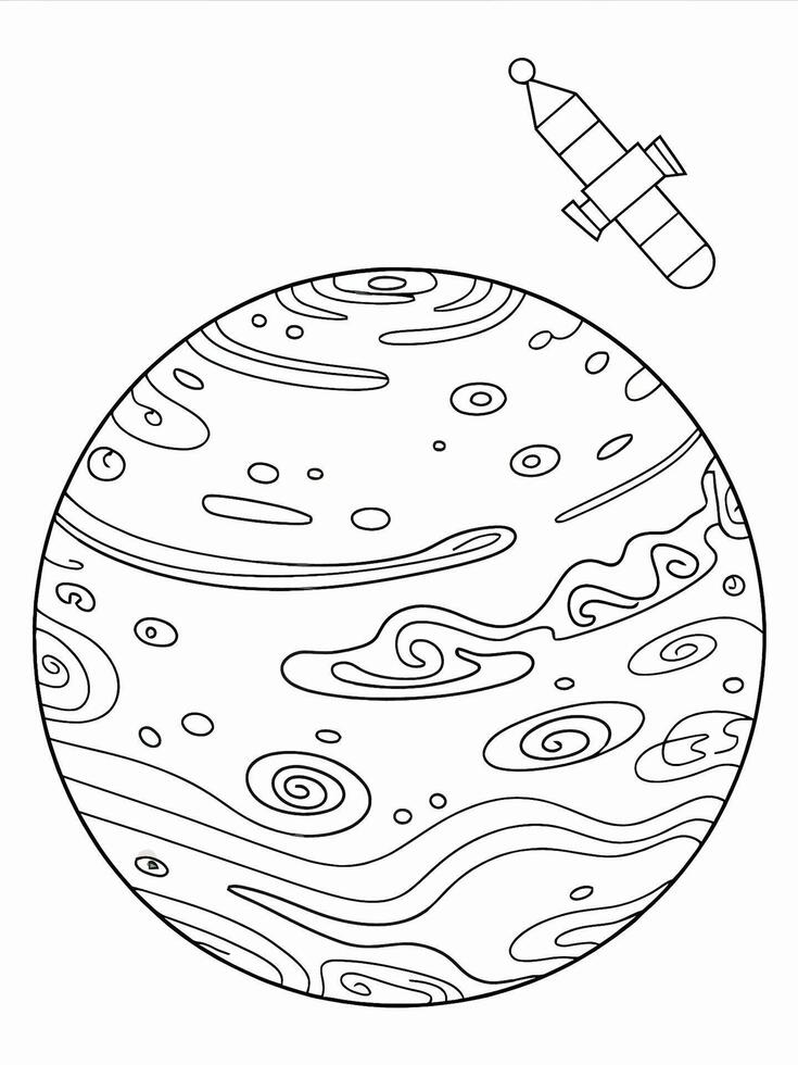 A large planet with swirling patterns is depicted in line art style. Pro Vector