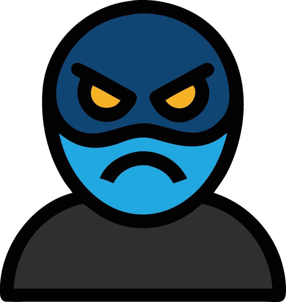 illustration depicting a masked figure with an angry expression, symbolizing criminal activity, cyber threat, or anonymity in a digital context Pro Vector