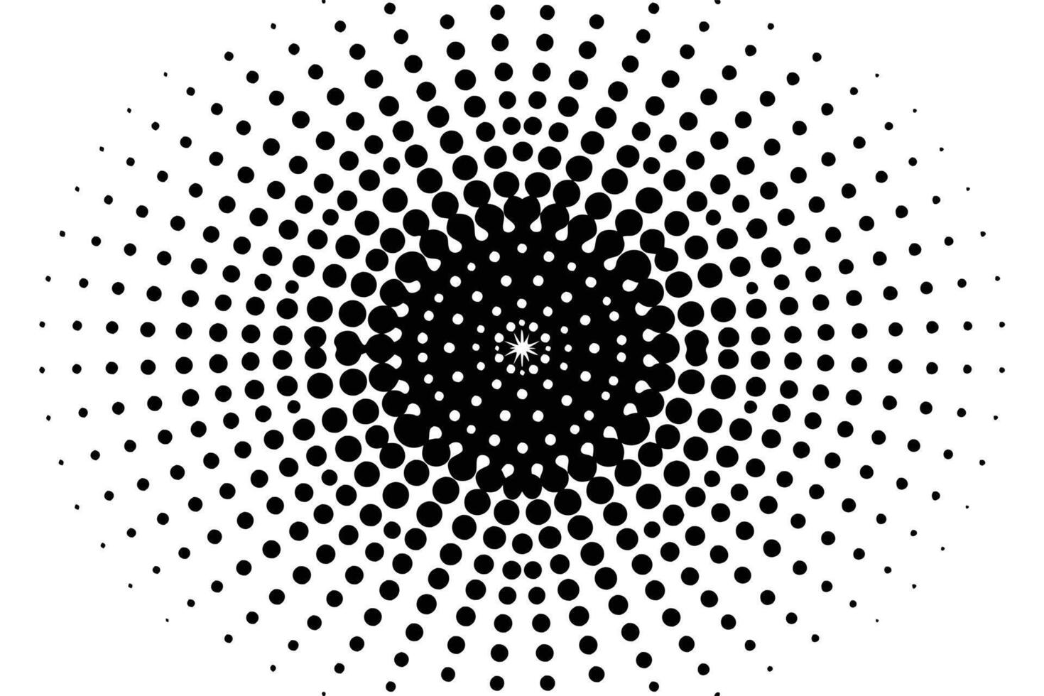 Radial halftone pattern with expanding black dots creating an optical illusion vector