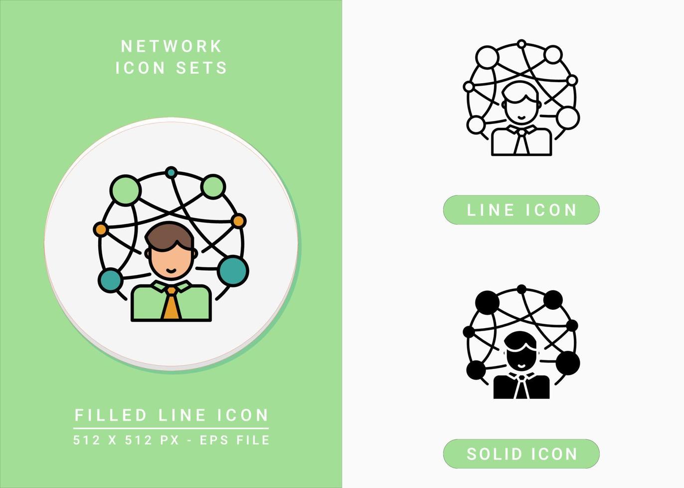 Network icons set vector illustration with solid icon line style. Business collaboration symbol. Editable stroke icon on isolated background for web design, user interface, and mobile app Pro Vector and Pro SVG