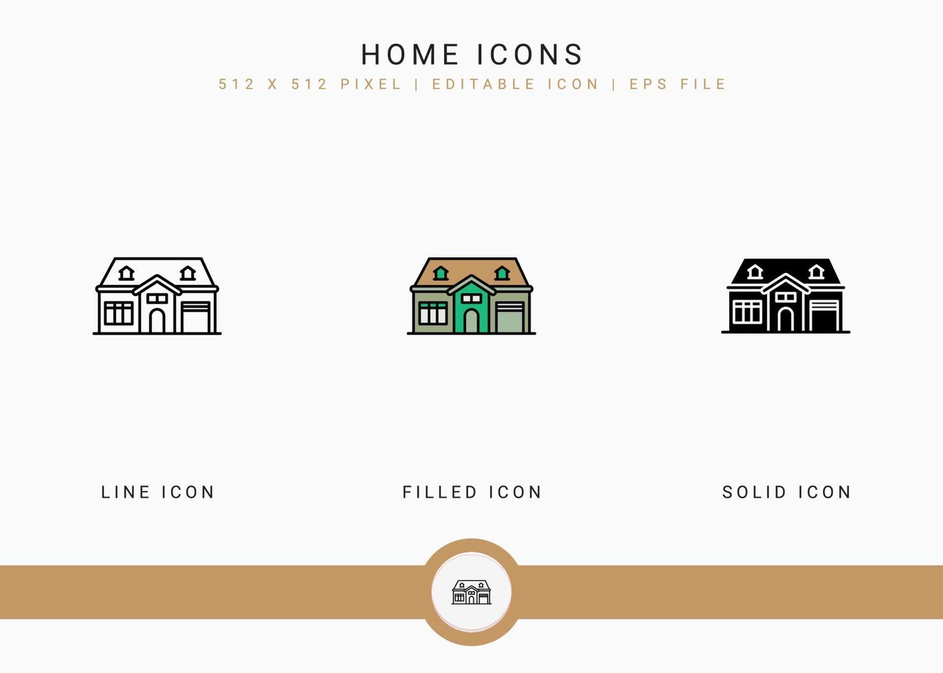 Home icons set vector illustration with solid icon line style. City building concept. Editable stroke icon on isolated background for web design, user interface, and mobile app Pro Vector and Pro SVG