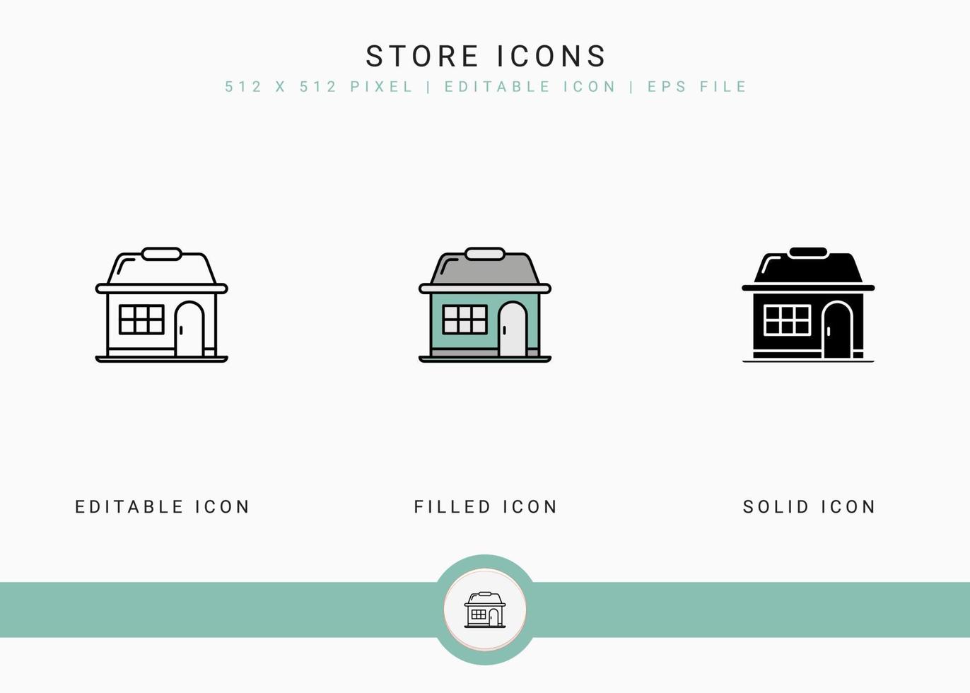 Store icons set vector illustration with solid icon line style. Online shop retail concept. Editable stroke icon on isolated background for web design, user interface, and mobile app Pro Vector and Pro SVG