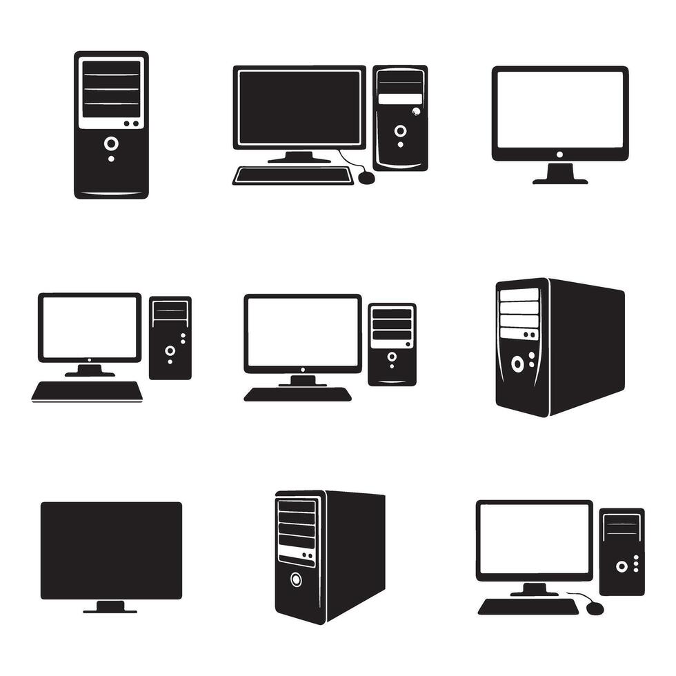 Computer Desktop Silhouette Icons for UI and Web Design Pro Vector