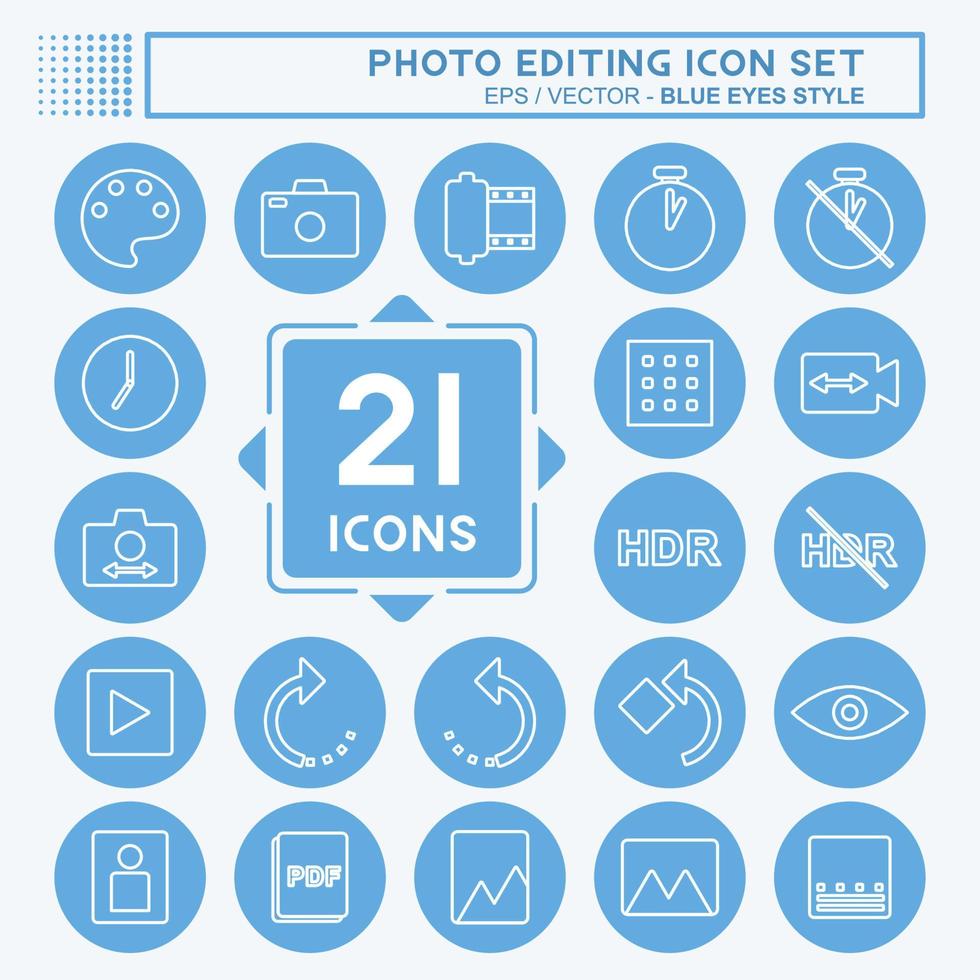 Photo Editing Icon Set. suitable for Web Interface symbol. blue eyes style. simple design editable. design template vector. simple symbol illustration Pro Vector