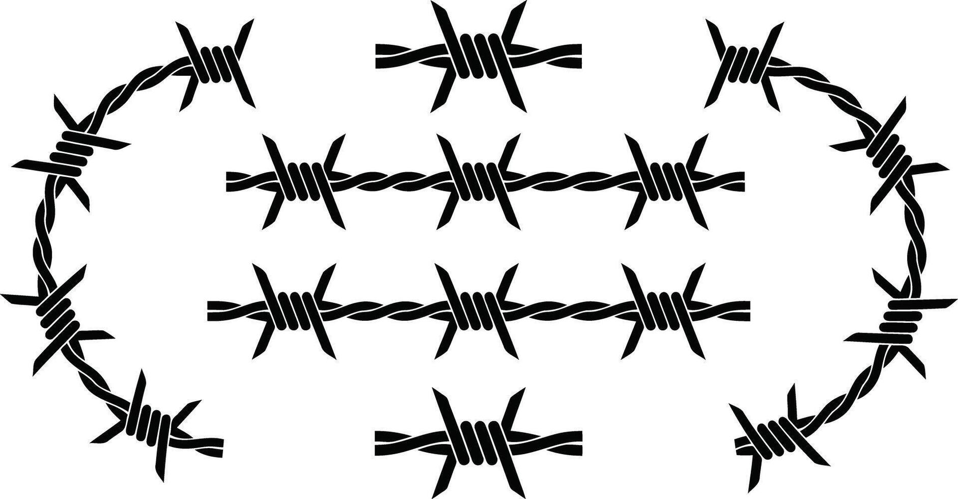 Barbed wire silhouette set with sharp thorn borders and fence elements for security designs vector