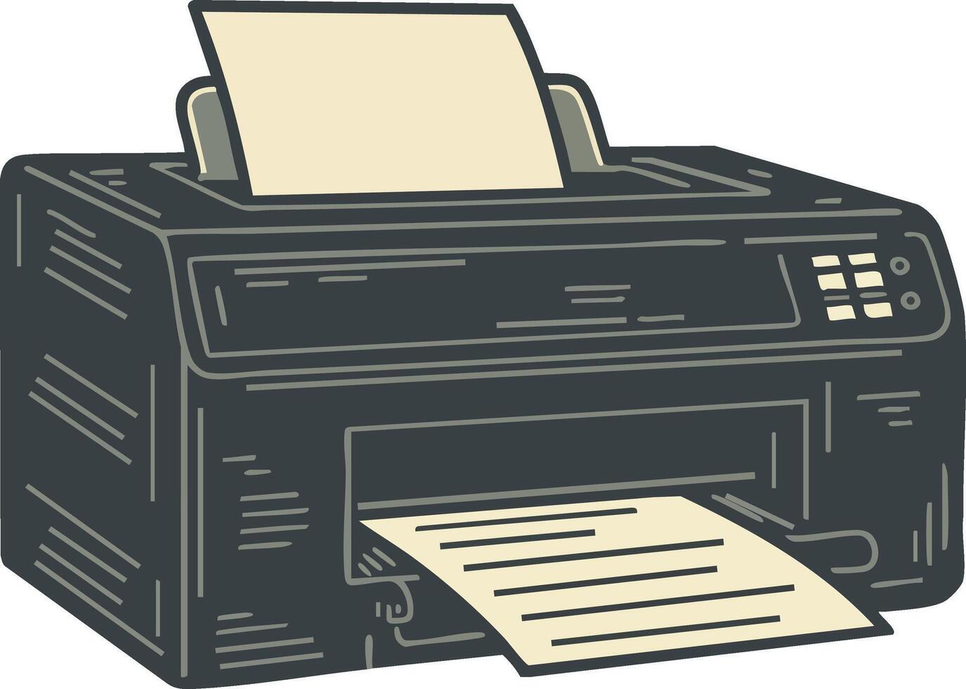 Office printer machine with paper printing document illustration in simple style Pro Vector
