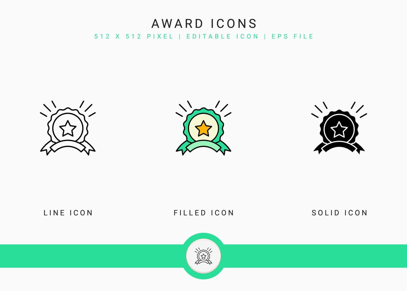 Award icons set vector illustration with solid icon line style. Winner prize concept. Editable stroke icon on isolated background for web design, user interface, and mobile app Pro Vector and Pro SVG
