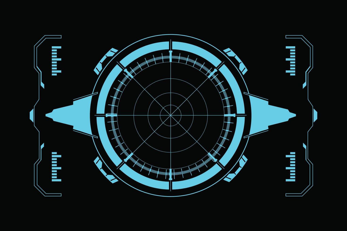 Futuristic Radar HUD Interface with Circular Design and Digital Technology Elements for Sci-Fi UI vector