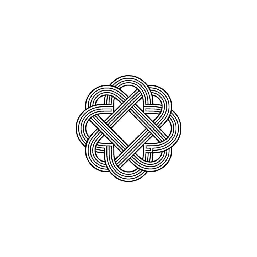 Intricate geometric Celtic knot pattern with intertwined circular elements forming a symmetrical labyrinth Pro Vector