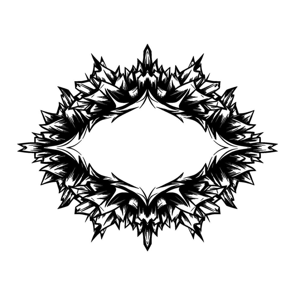 Intricate symmetrical crystalline geometric mandala frame with sharp pointed edges and an oval empty space for text or elements Pro Vector