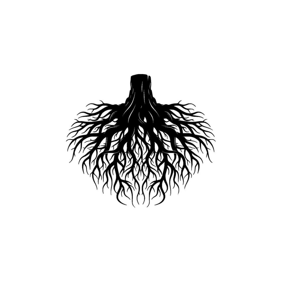 A stark silhouette of a tree stump with its intricate root system spreading outwards in a circular pattern Pro Vector