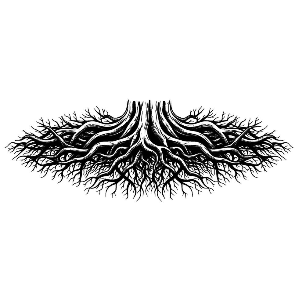 Intricate illustration of a massive tree root system spreading horizontally isolated Pro Vector
