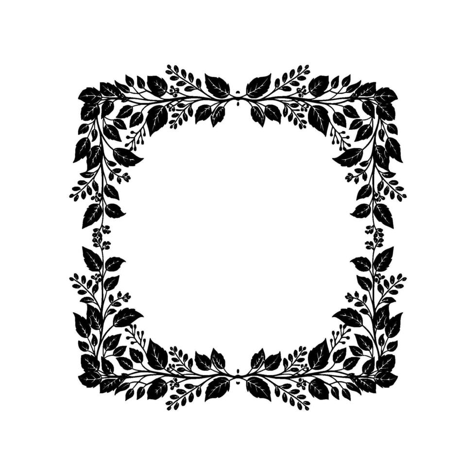 Elegant silhouette of a square botanical frame composed of intricate branching leaves and small berries Pro Vector