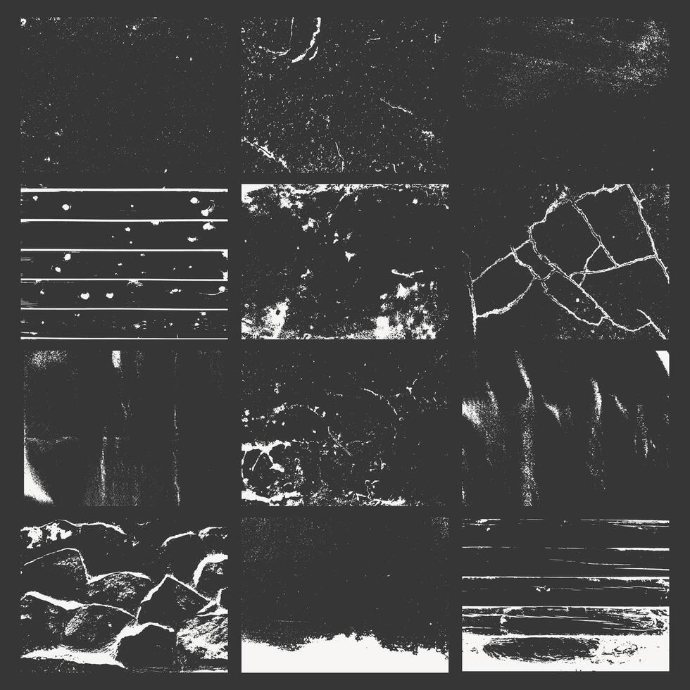 Set of different grunge textures isolated on dark background. Abstract traced backgrounds for design Pro Vector