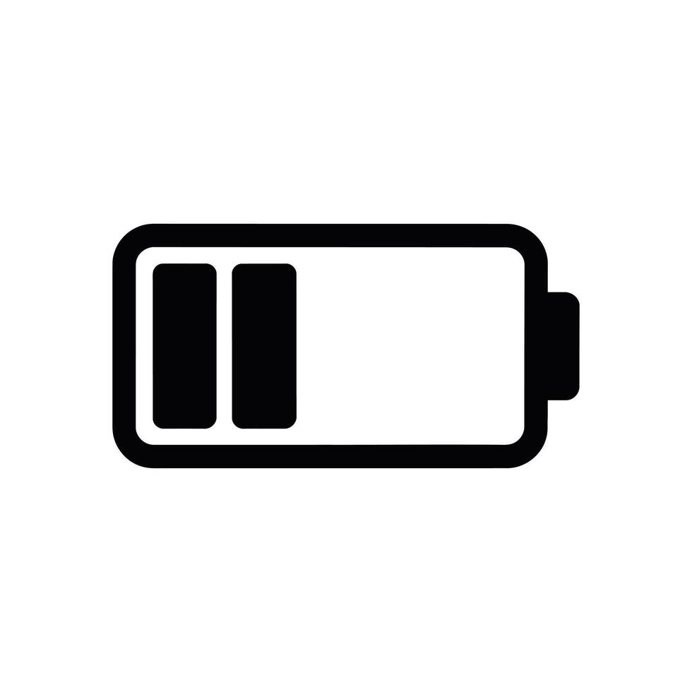 A simple battery icon with two internal bars indicating a partial charge level Pro Vector
