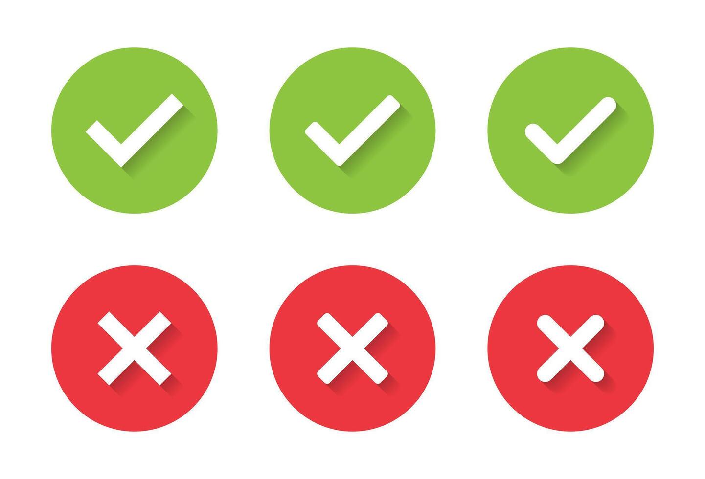 Check and cross mark icon set with shadow. Tick and X symbol. Accept and reject sign Pro Vector