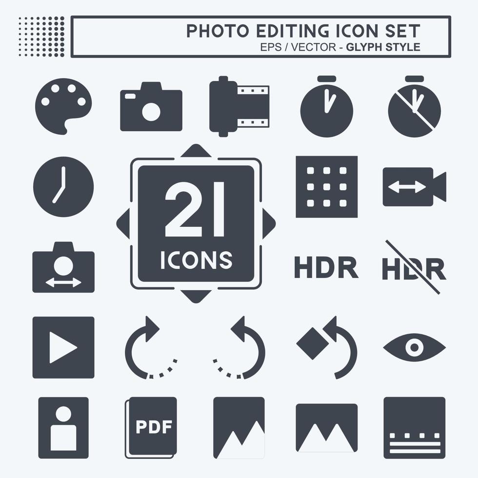 Photo Editing Icon Set. suitable for Web Interface symbol. glyph style. simple design editable. design template vector. simple symbol illustration Pro Vector