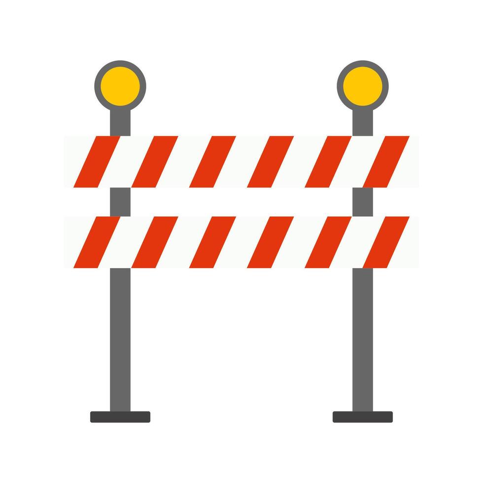 Closed road barrier with a stop sign blocking access. Minimalist flat design of traffic control elements on a clean background. Pro Vector