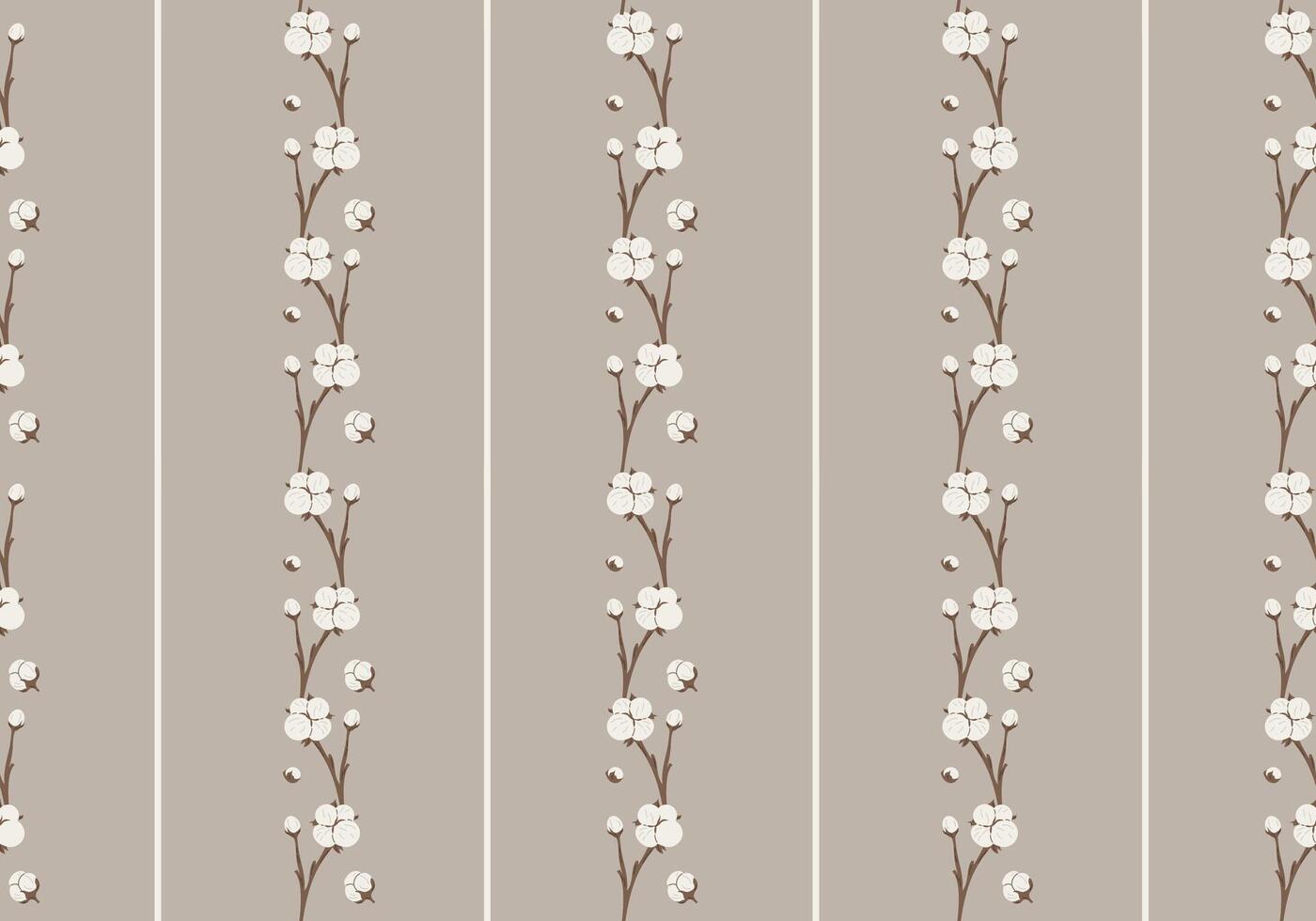 Cotton stem stripe seamless pattern on warm greige background with botanical vertical lines Pro Vector