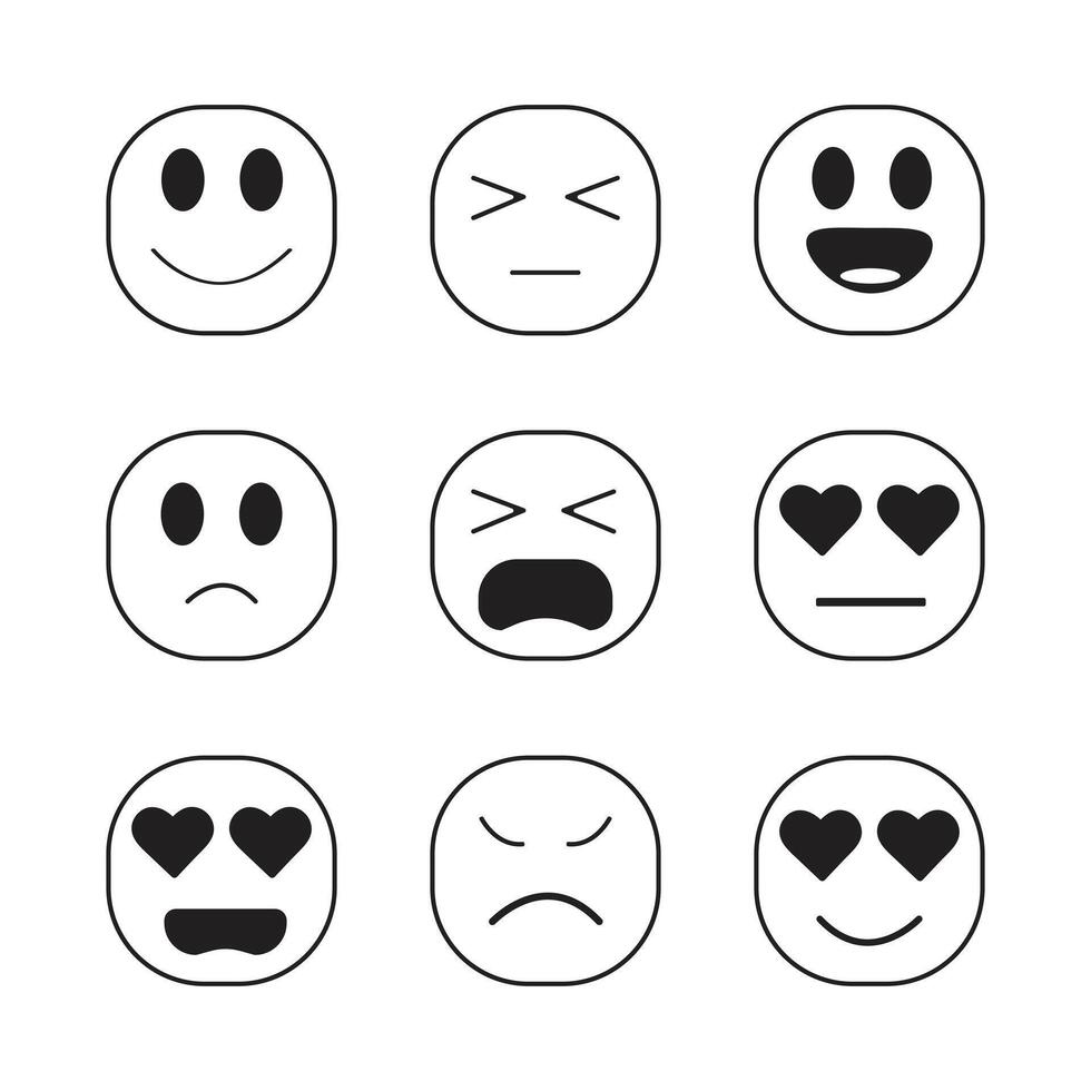Expressive Emoji Faces in Simple Line Style for Emotions, Reactions, and Digital Design. Pro Vector