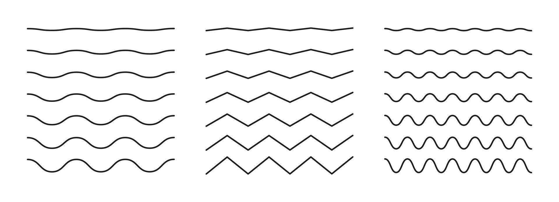 zigzag and wavy horizontal underline set. Waves lines. Wave ornament pattern. Wave thin line background. Set of wavy line. Pro Vector