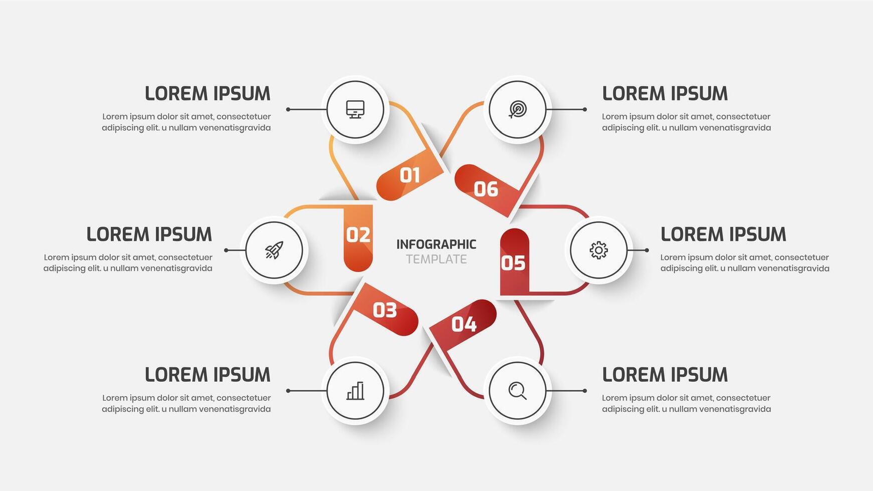 Business Infographic Template with Circle Label, Thin Line, Six Number and Icon for Presentation Pro Vector