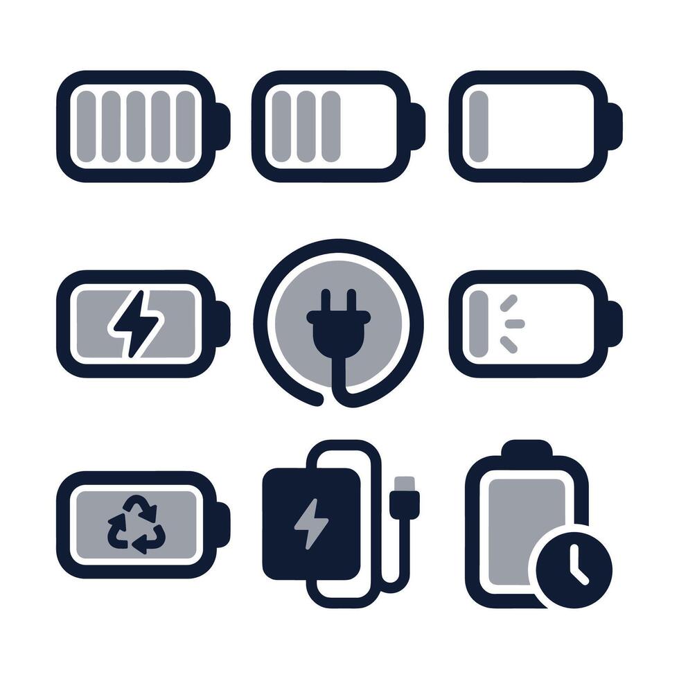 Minimalist Glyph Battery Charging Indicator with Various Status Indication Icon Set Pro Vector