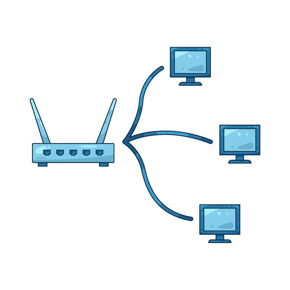 Illustration of Router Connected to Three Desktop Computers Pro Vector