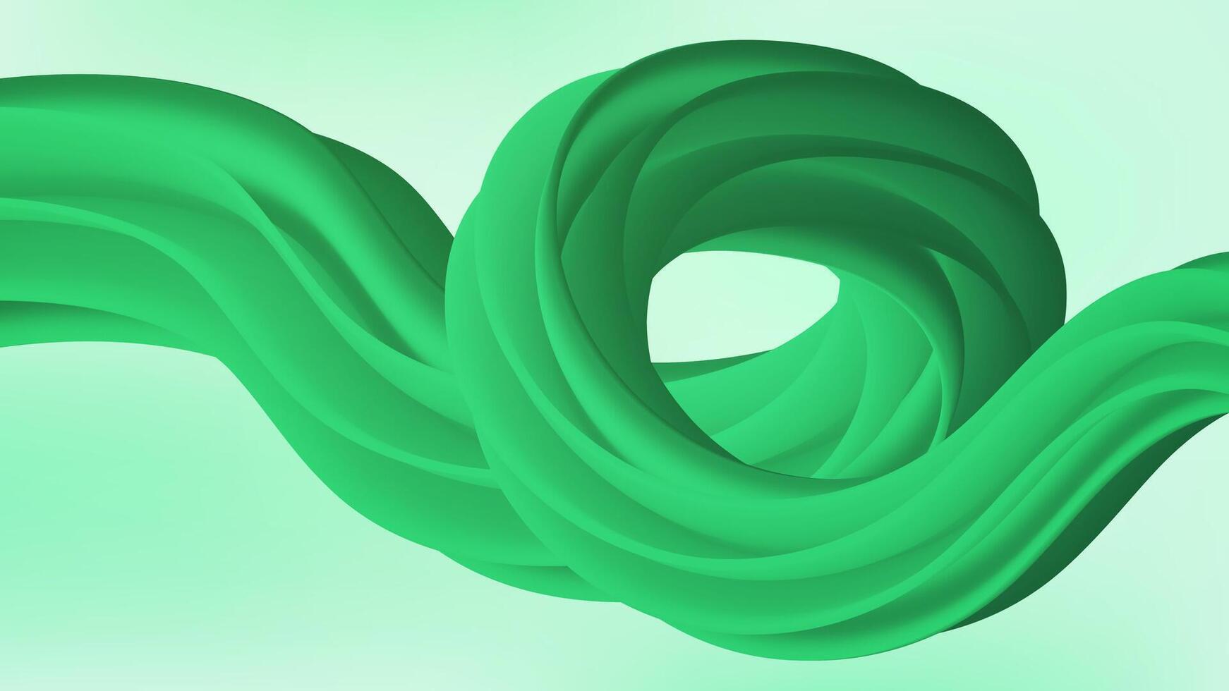 Abstract Green 3D Swirl Background. Illustration of Fluid Twisted Shape with Matte Gradient. Eco, Nature, and Finance Concept. Free Vector