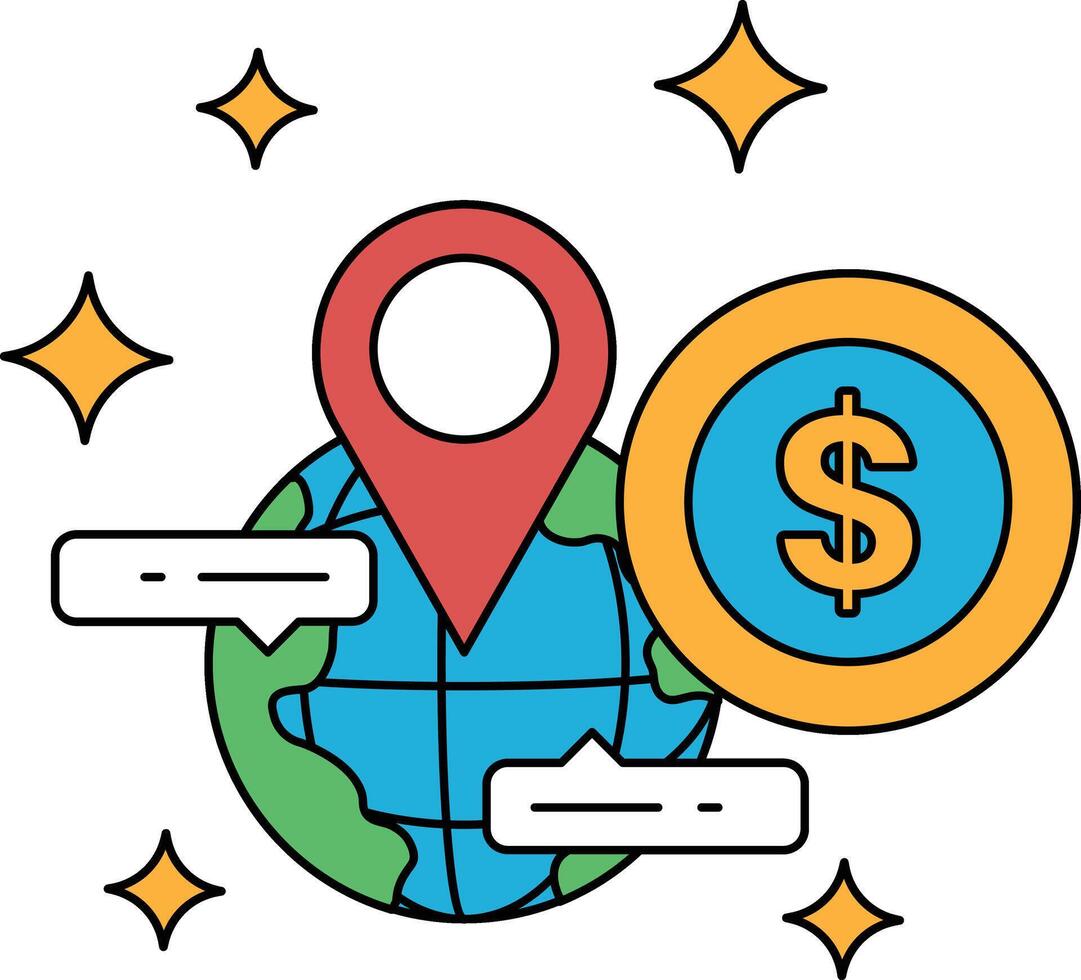 A drawing of a globe with a dollar sign and a map of the world Pro Vector
