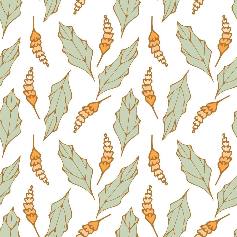 Spring botanical pattern with doodle twigs and flowers on white background. Pro Vector