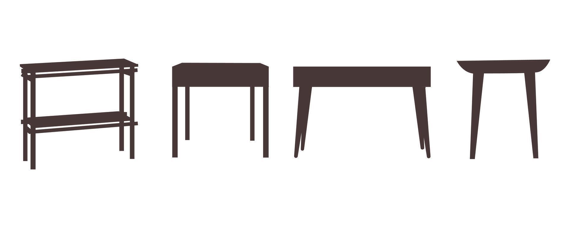 Hand drawn illustration isolate on white background for logo and web design .Collection of table silhouette templates. illustration in EPS.10 Pro Vector