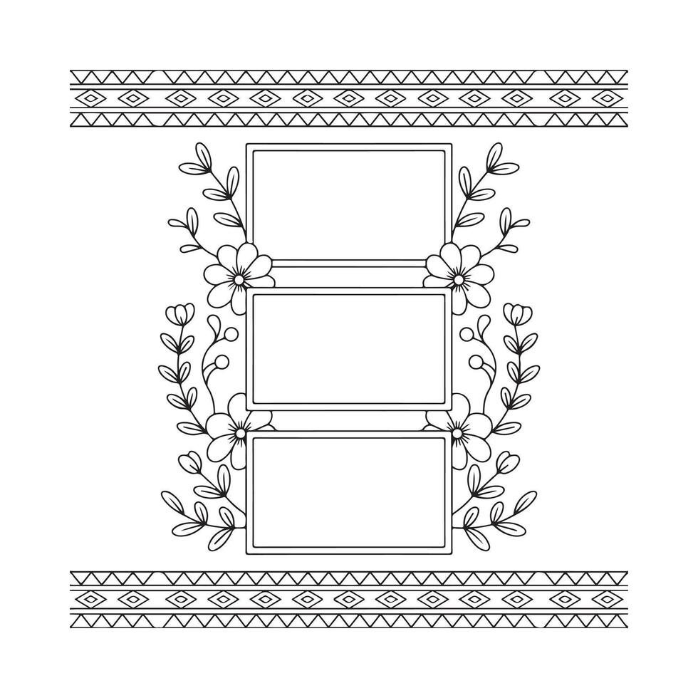 Three rectangular frames decorated with flowers and geometric borders at the top and bottom Pro Vector