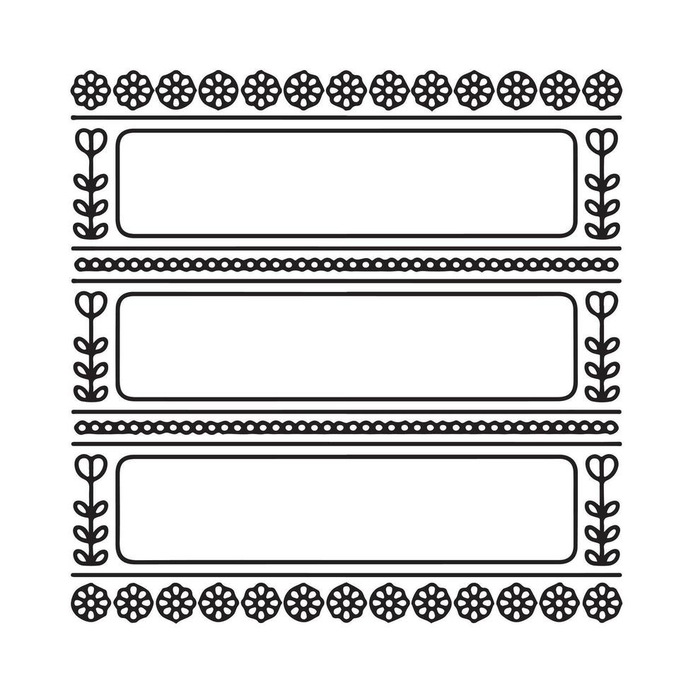 Three simple rectangular frames with decorative flower and leaf borders in black and white line art Pro Vector