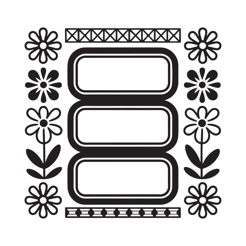 Scandinavian folk art inspired decorative border with three blank rectangular labels Pro Vector
