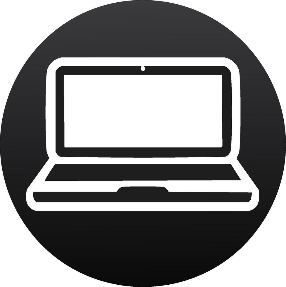 Laptop icon inside black circle, isolated design element, computer symbol for digital display Pro Vector