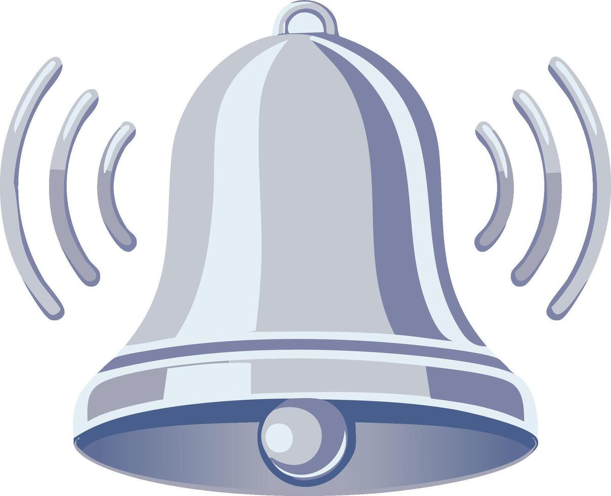 Ringing silver bell with sound waves conveys an alert, notification, or signal concept Pro Vector