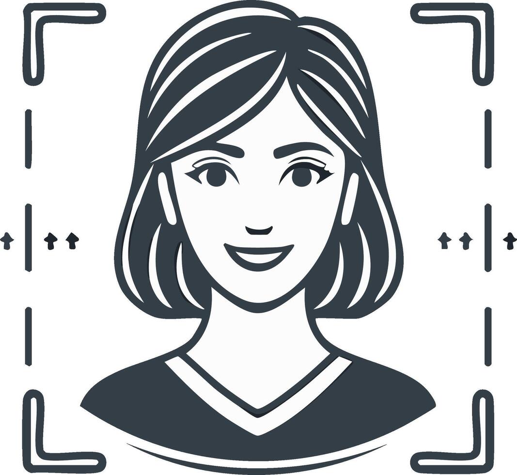 Woman Portrait in Stylized Face Recognition Scan Frame for Security Authentication ID Pro Vector
