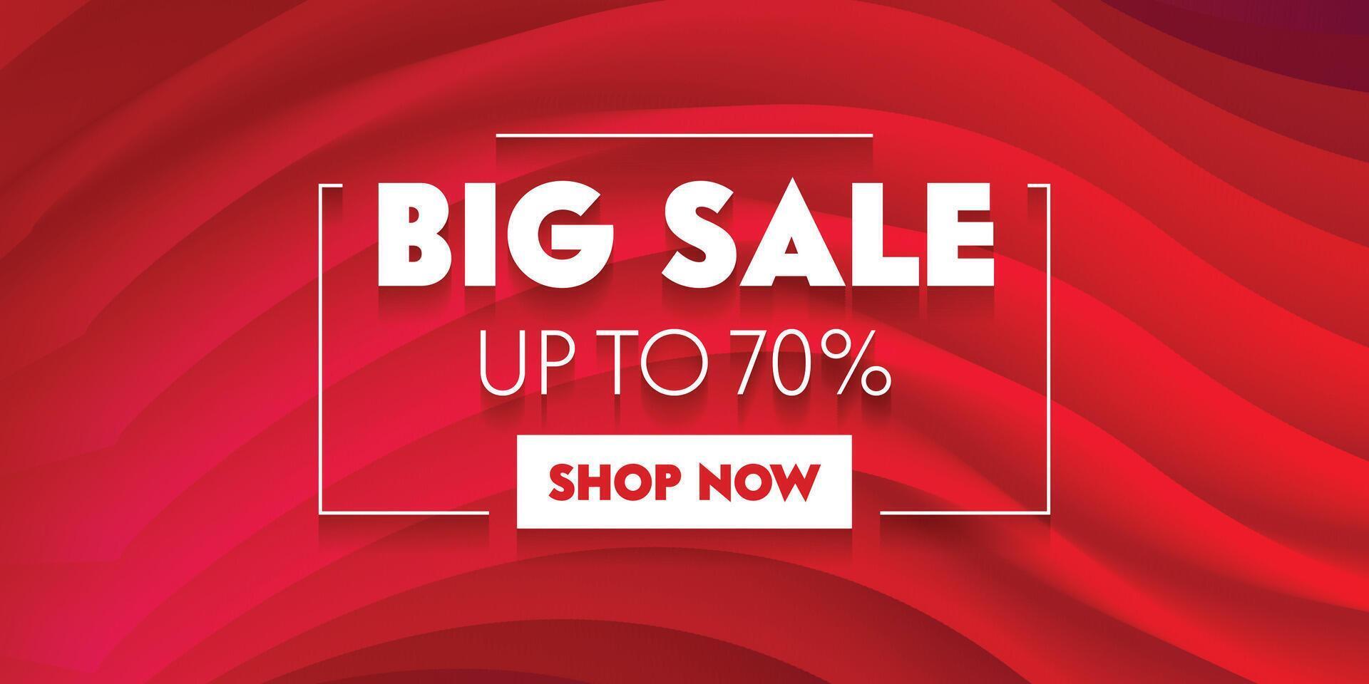 Big Sale Advertising Banner with Typography on Red Background with Abstract Waves. Branding Template Design Pro Vector