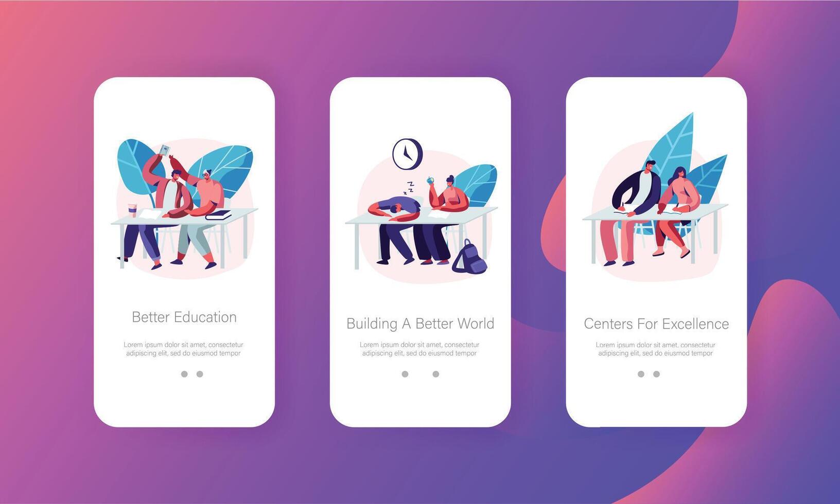 Higher Education Concept for Website or Web Page, Students Sitting at Desks Visiting Lecture in University, Characters Learning Pro Vector