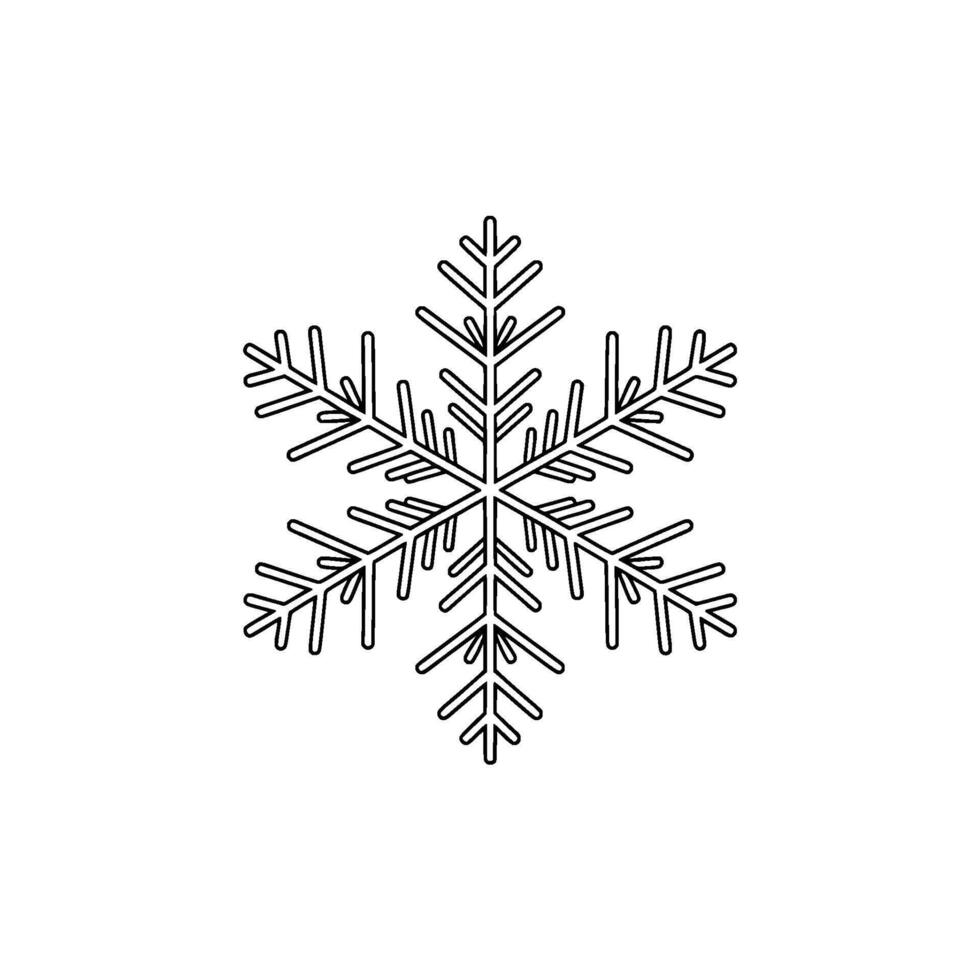 A minimalist illustration of a single hexagonal snowflake with intricate symmetrical arms outlined in dark gray Pro Vector