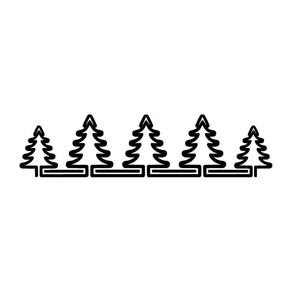 A minimalist continuous line art depiction of a row of stylized evergreen coniferous trees in varying sizes isolated Pro Vector