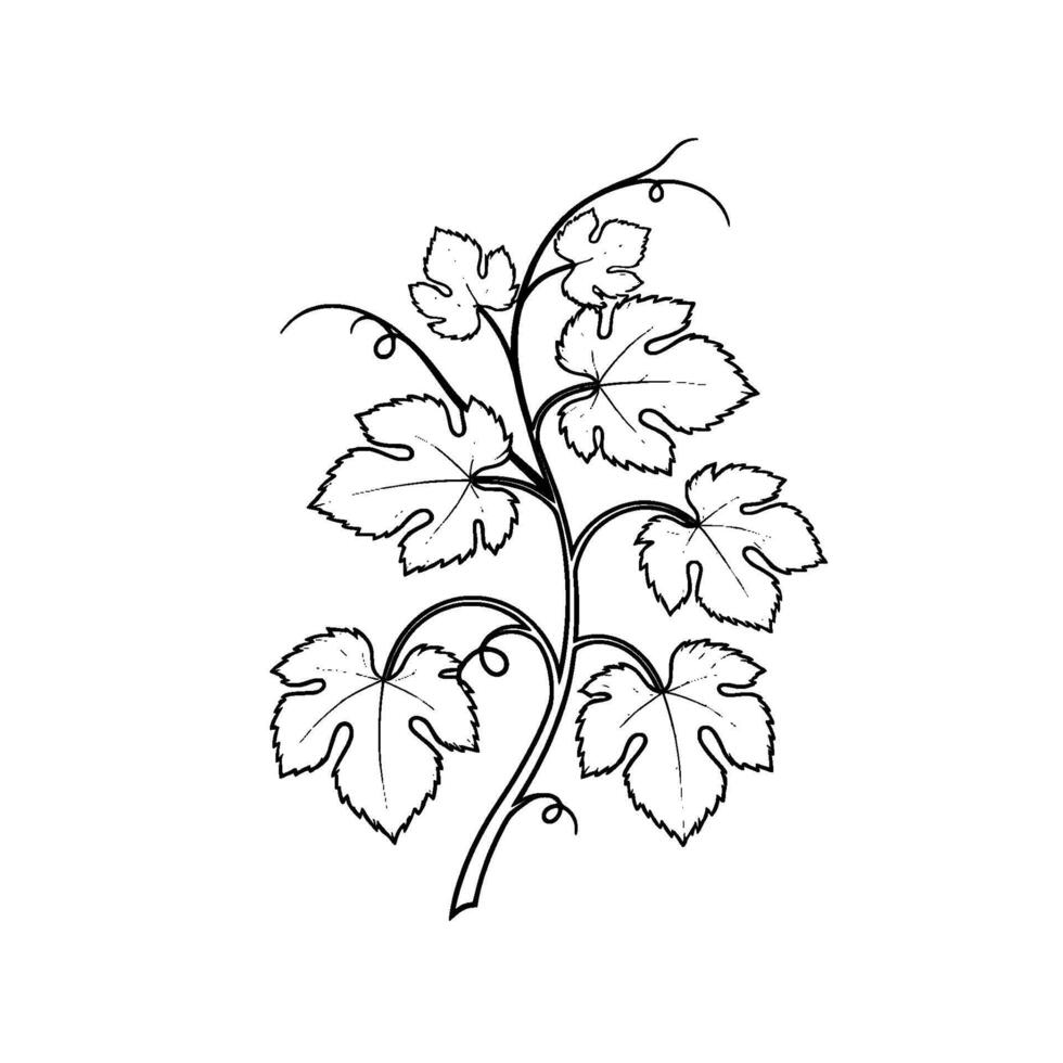 An elegant and artistic line drawing illustration of a delicate grapevine branch with multiple lobed leaves and coiling tendrils Pro Vector