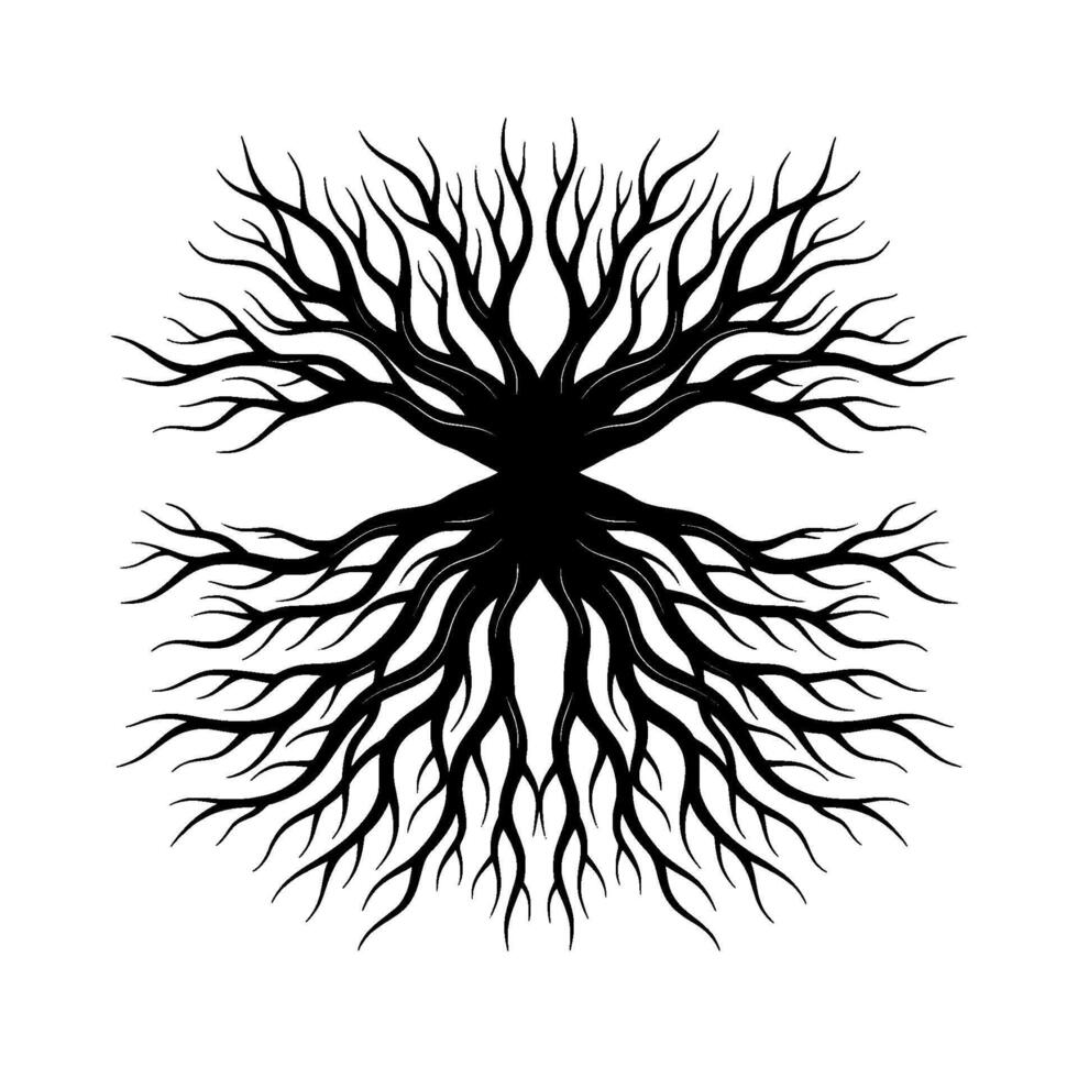 A striking silhouette of an abstract branching root system or tree structure with intricate organic lines isolated Pro Vector