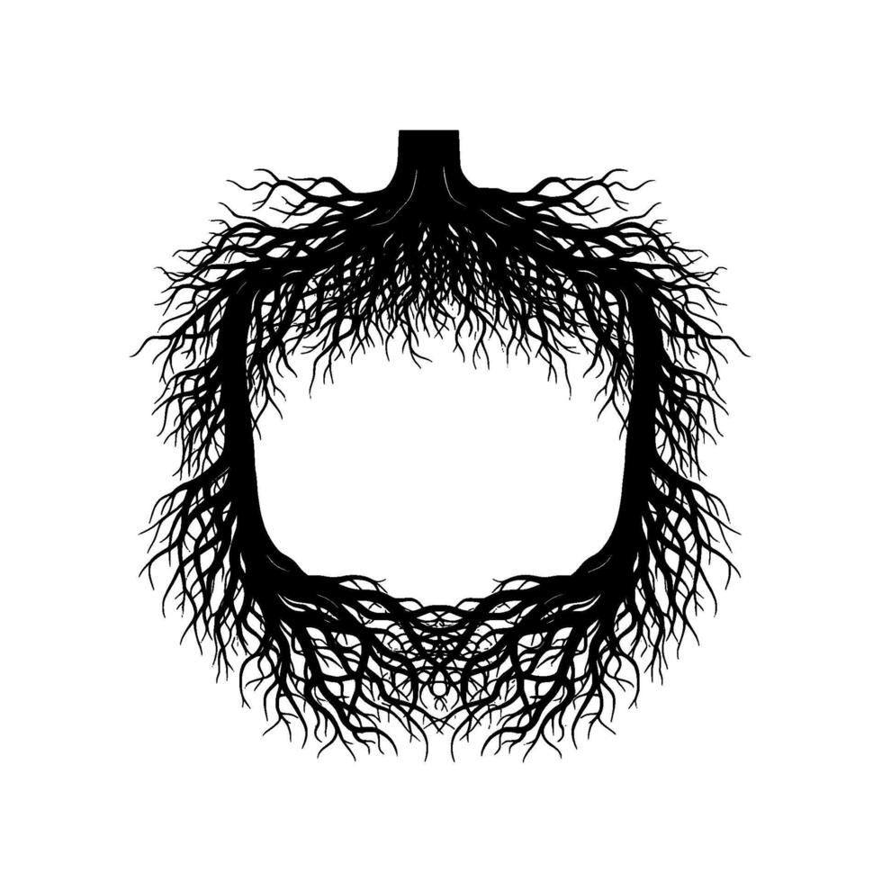An intricate silhouette of intertwined tree roots forming a hexagonal frame Pro Vector