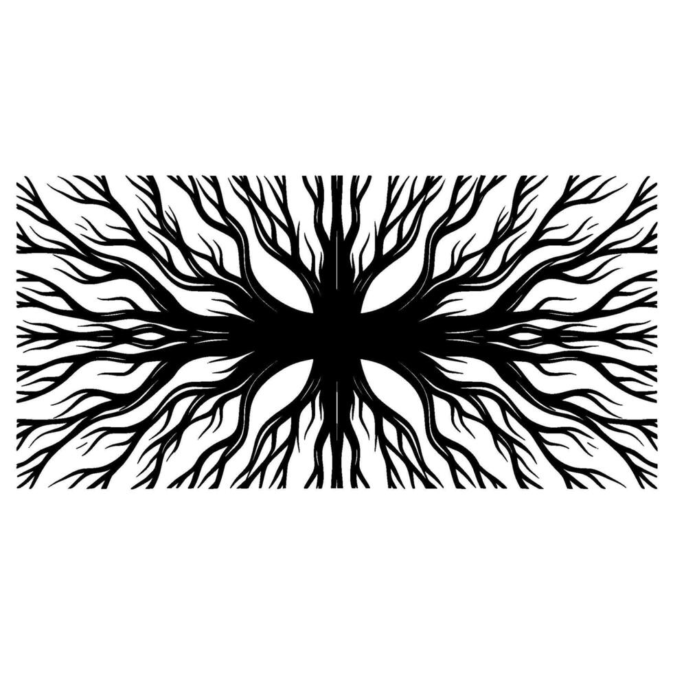 A striking abstract silhouette of intricate root systems or branching veins spreading outwards from a central dark void Pro Vector