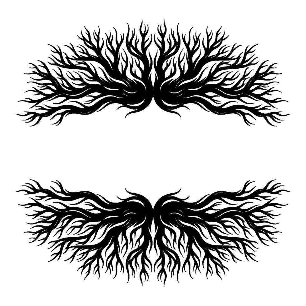 Symmetrical artistic abstract flowing tree branch roots and branches element Pro Vector